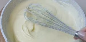 À part, diluez la fécule dans un peu de lait et mélangez au mélange précédent. Si vous le souhaitez, ajoutez un peu de jus de citron pour parfumer.